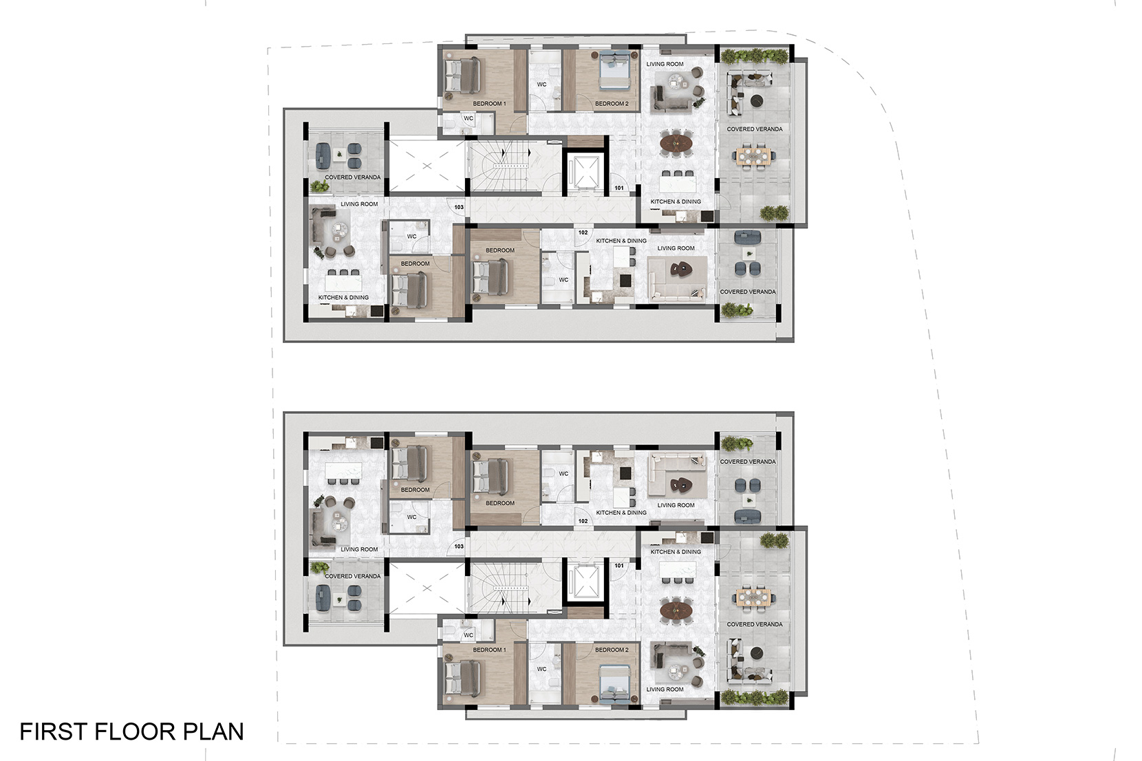 | A103 | 1 BED | 1 BATH | 84 M2 | AVAILABLE | 1 BED APT |